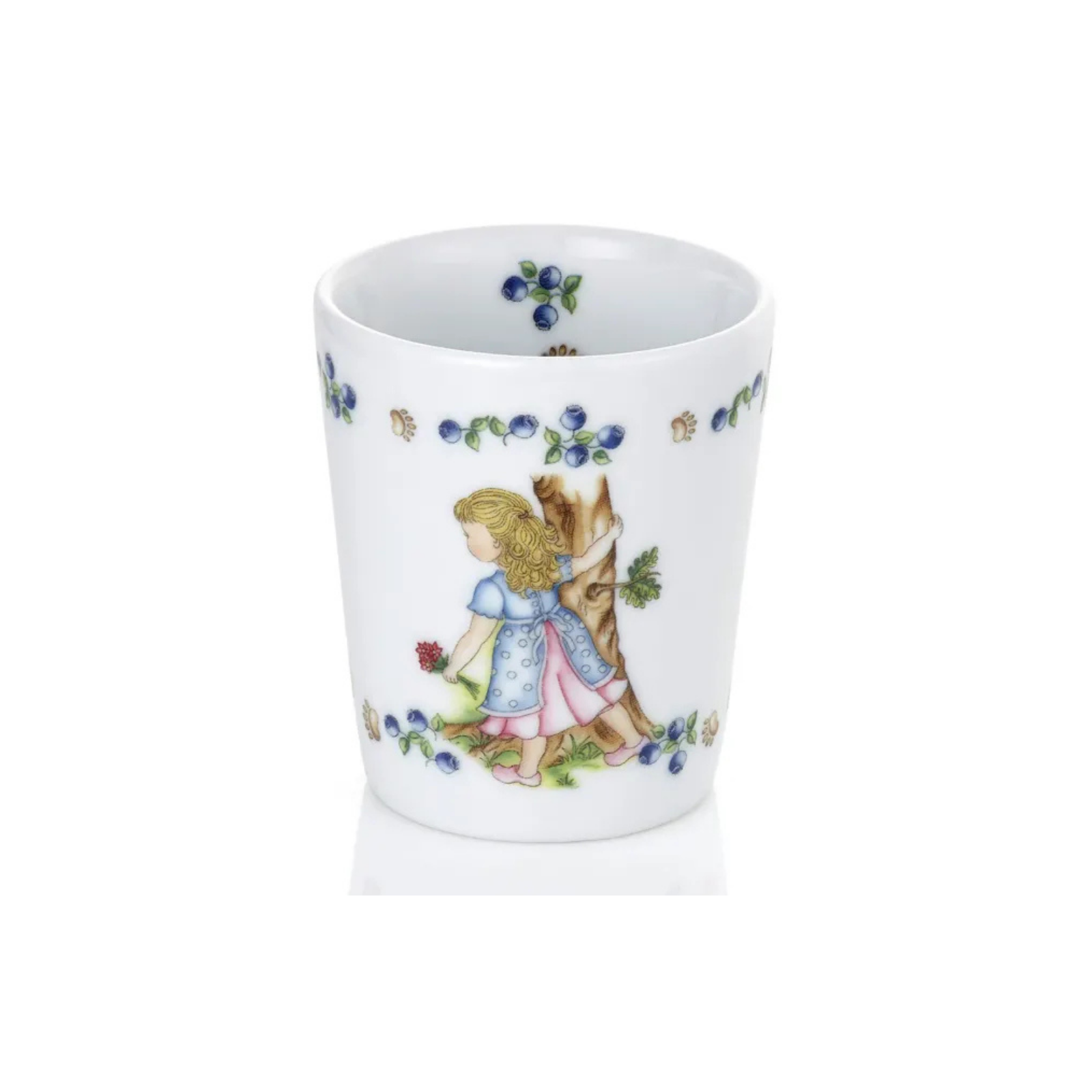 Krus i porselen med motiv fra eventyret om Gullhår og de tre små bjørner.