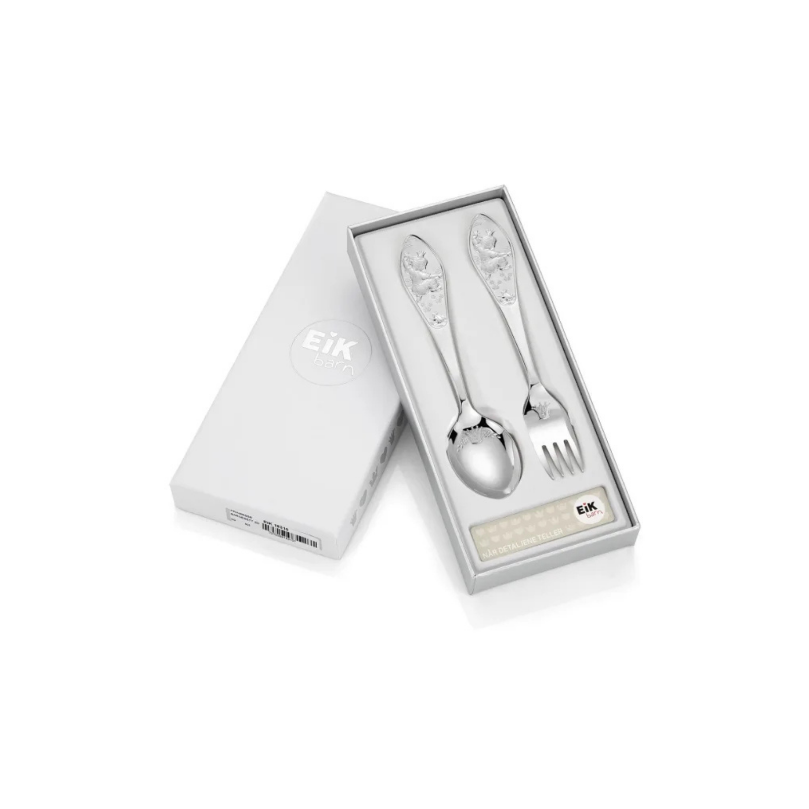 Gaveeske med skje og gaffel i den fineste sølv til små prinsesser. Med muligheter for gravering av navn og dato blir dette en minnerik gave fra dåpen eller navnefesten.