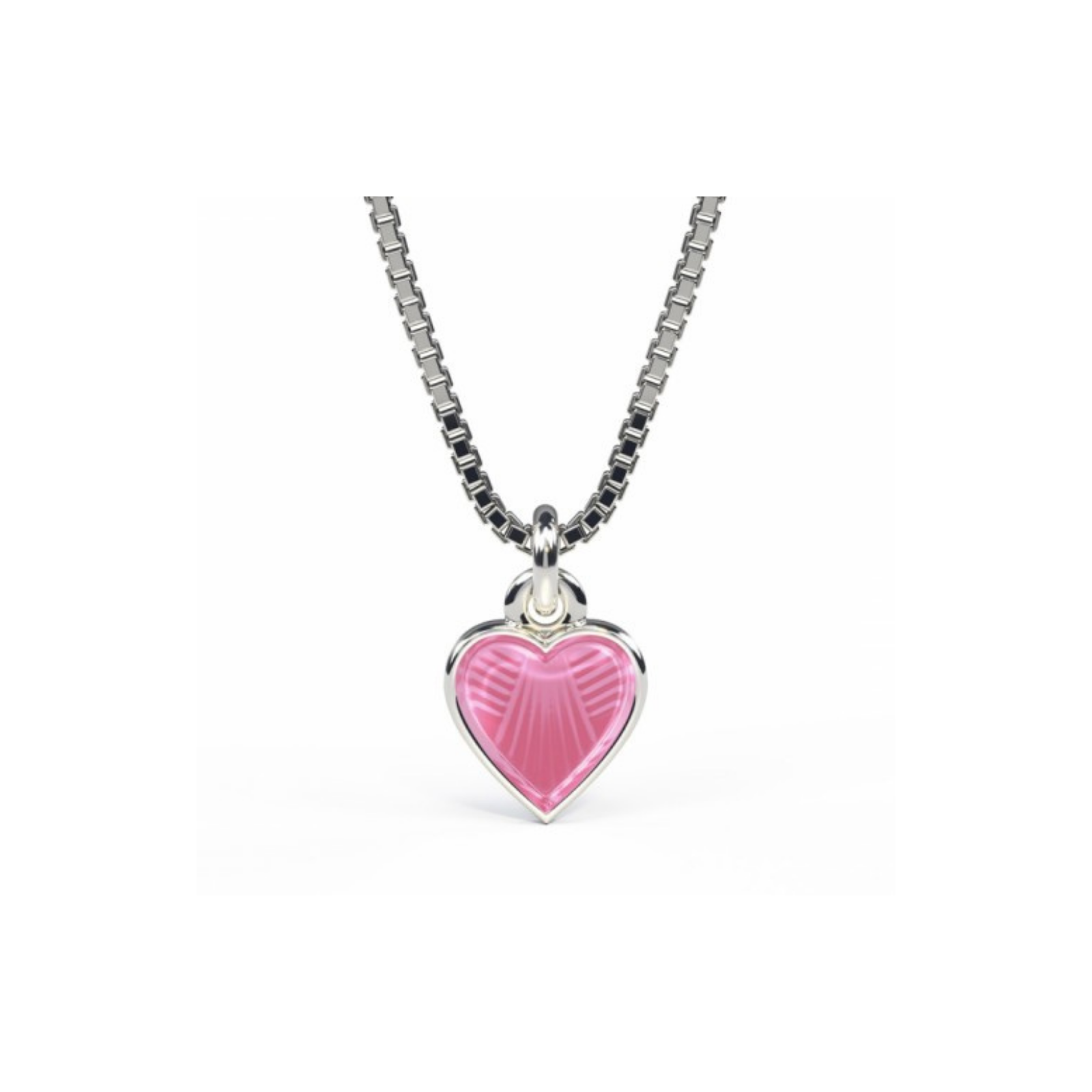 Produktet inkluderer: Anheng, rhodinert sølvkjede og smykkeeske