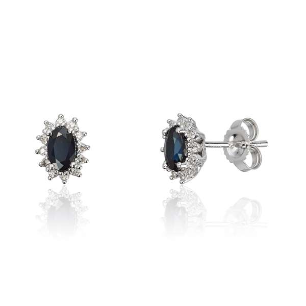 Klassisk rosett ørepynt med diamant og safir. Diamantene tilsvarer en karat på 0,067CT I W/SI-kvalitet.