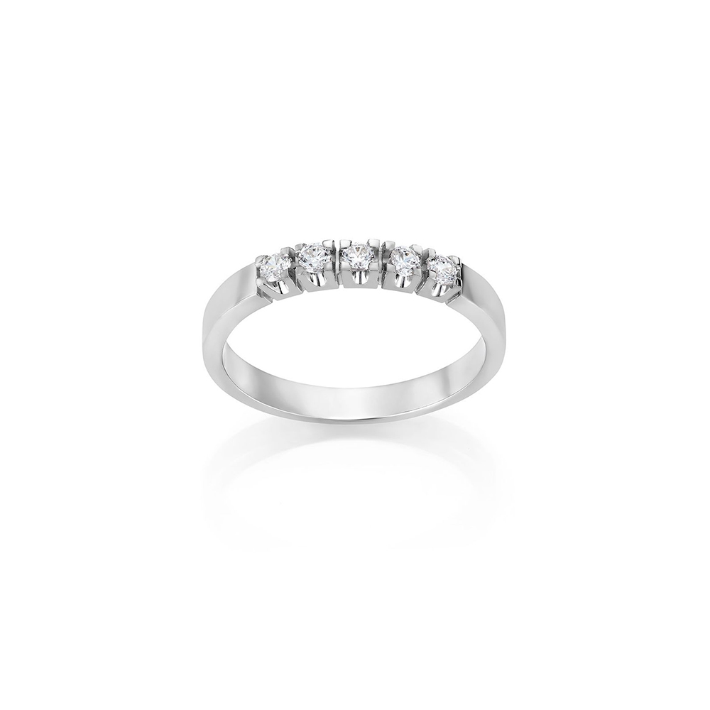 Klassisk alliansering fra Espeland med 5 stener. Diamantene har en total karat på 0,35 i TW/SI-kvalitet. Det fine med en alliansering er at du har anledning til å fornye ringen ved å fatte inn flere diamanter og stener ved en senere anledning som markør for livets viktige hendelser. Ringen er nydelig alene men den er også veldig vanlig og kombinere med en enstensring.