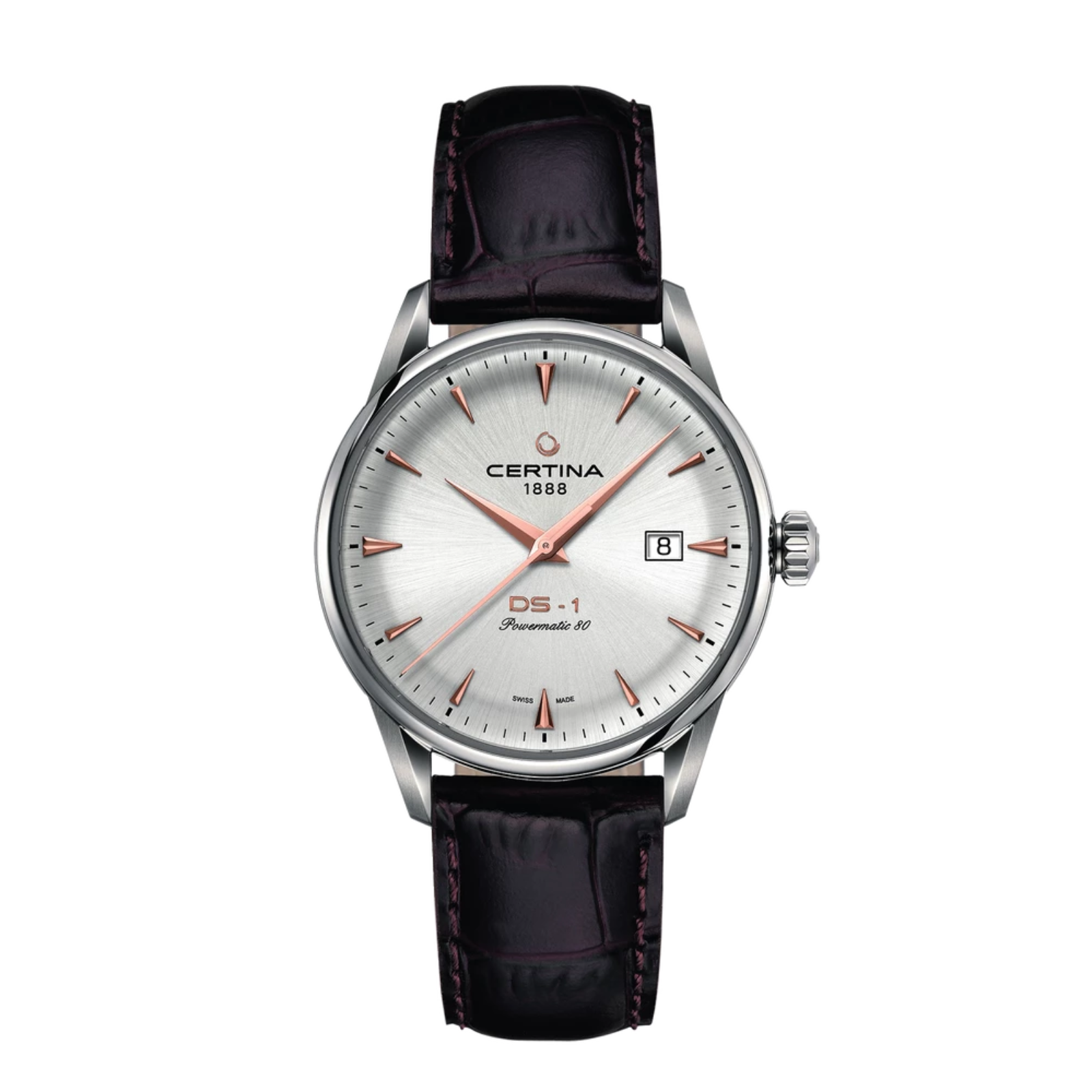 Drevet av det automatiske Powermatic 80-urverket utmerker Certina DS-1 Powermatic 80 seg med sin enestående presisjon og pålitelighet. Designet for menn som verdsetter en stil som er både elegant og tidløs, passer den til enhver anledning.