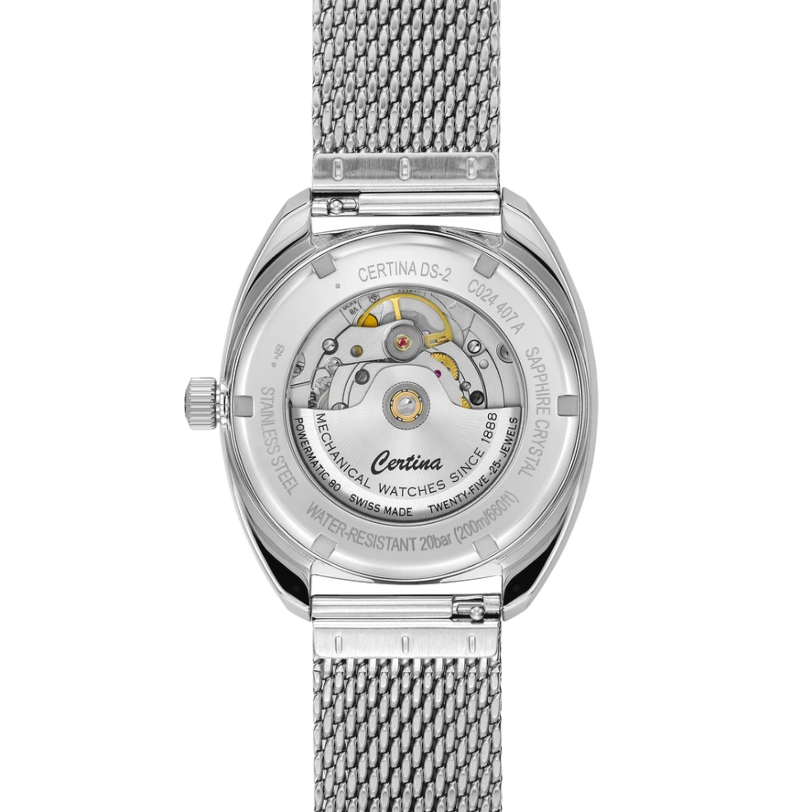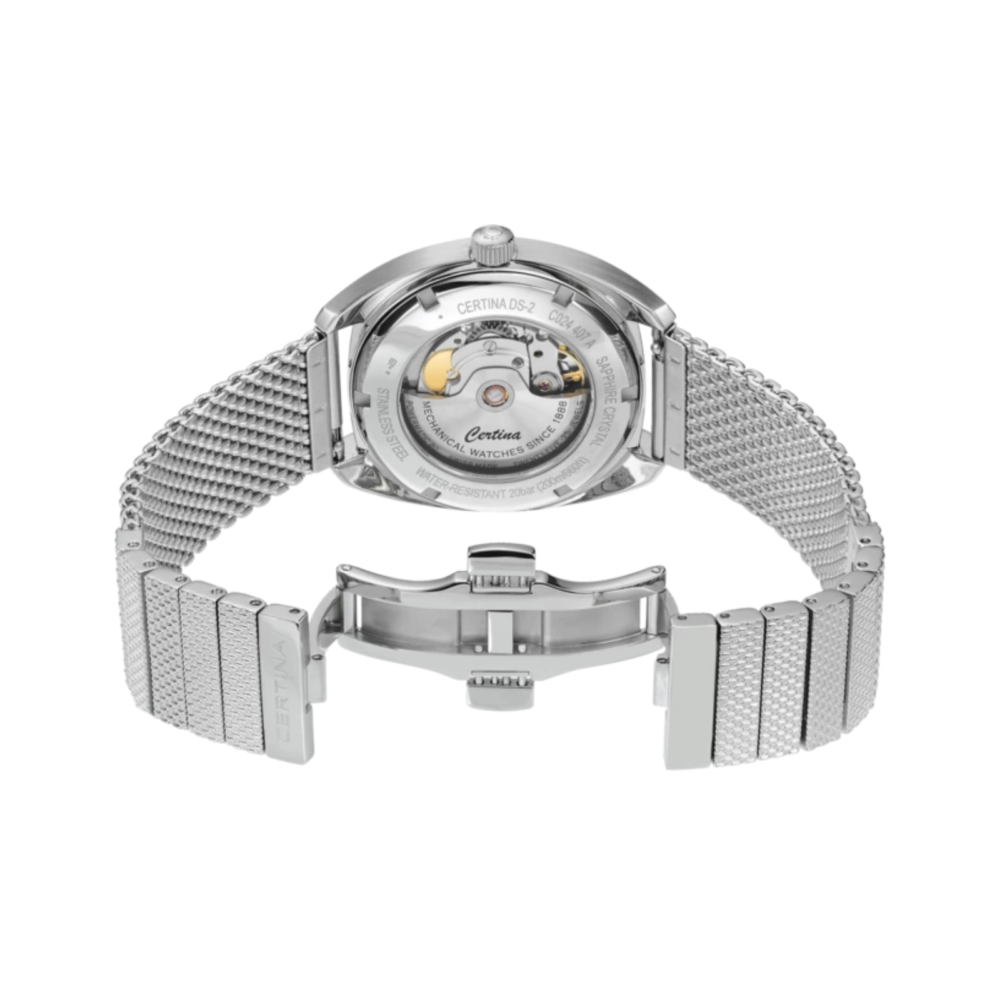 Utstyrt med et høypresist automatisk urverk er Certina DS-2-klokken et symbol på pålitelighet og eleganse. Som en direkte etterkommer av modellen fra 1968 viderefører den innovasjonsånden som preget sin tid, da Certina utfordret grensene for urverks holdbarhet med sitt Double Security (DS)-konsept.