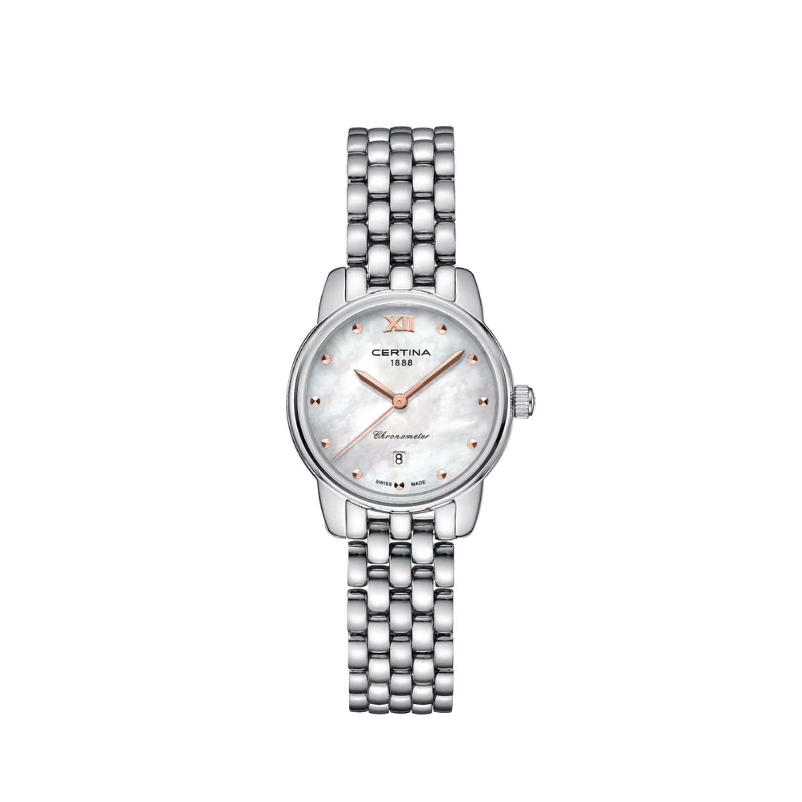 Elegant og presis – DS-8 Lady 27 mm representerer feminin raffinement innen urmakerkunst. Drevet av et Precidrive™-kvartsurverk leverer den bemerkelsesverdig nøyaktighet og er kronometer-sertifisert av COSC.