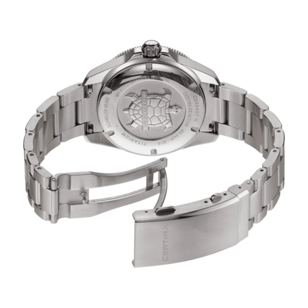 DS Action Diver 40,5 mm markerer også en milepæl som den første klokken fra Certina som er utstyrt med neste utvikling av DS-systemet: det nye «DS Concept Extreme Shock Resistance».
