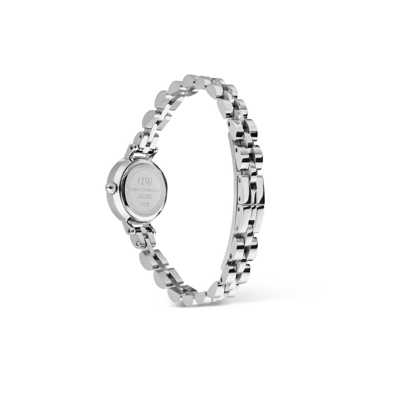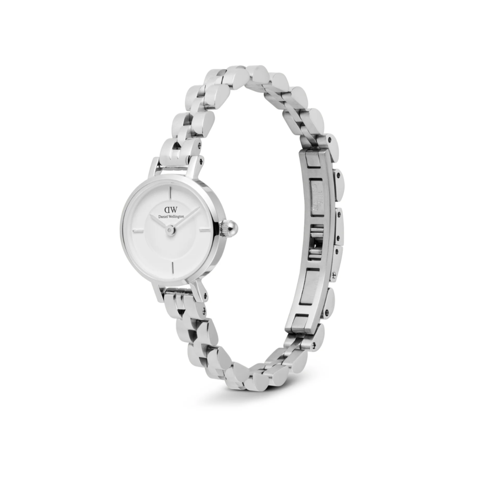 Klassiske Petite Mini får et nytt uttrykk med denne sofistikerte 3-ledds lenken. Klokken har en rund boett i rustfrittstål og en ren hvit urskive. Den smale 6 mm lenken med buet design sitter lett og komfortabelt på håndleddet.