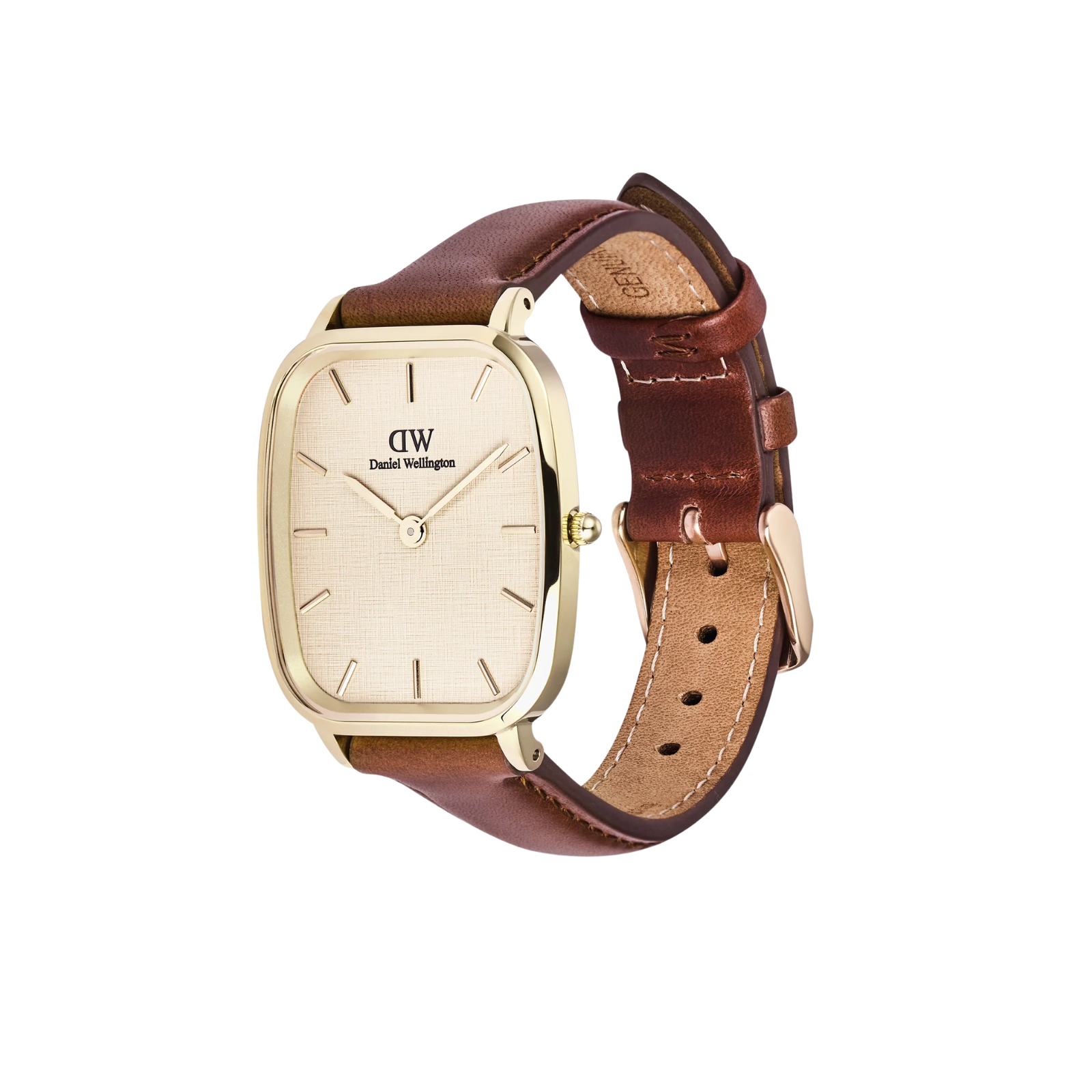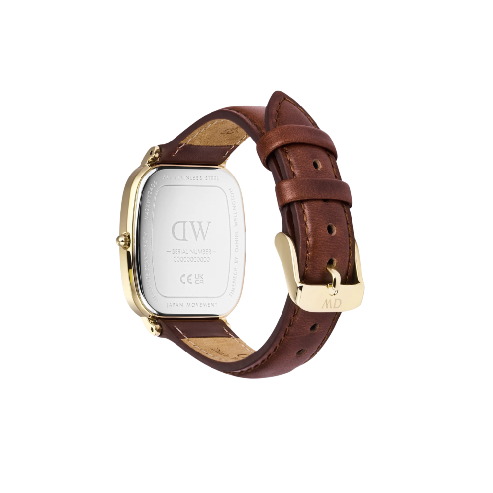 Denne Daniel Wellington-klokken kombinerer tidløs eleganse med moderne stil. Med en 36,5 x 32 mm urskive i en varm champagnefarge og en klassisk vintage brun lærrem, er denne klokken både sofistikert og allsidig.