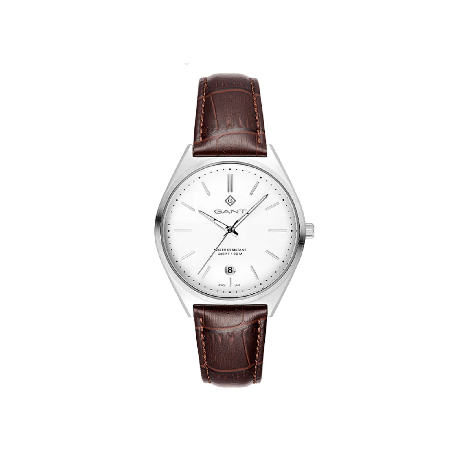 Gant Abington er en elegant og tidløs herreklokke i stål med en sølvfarget skive med sølvfargede detaljer
