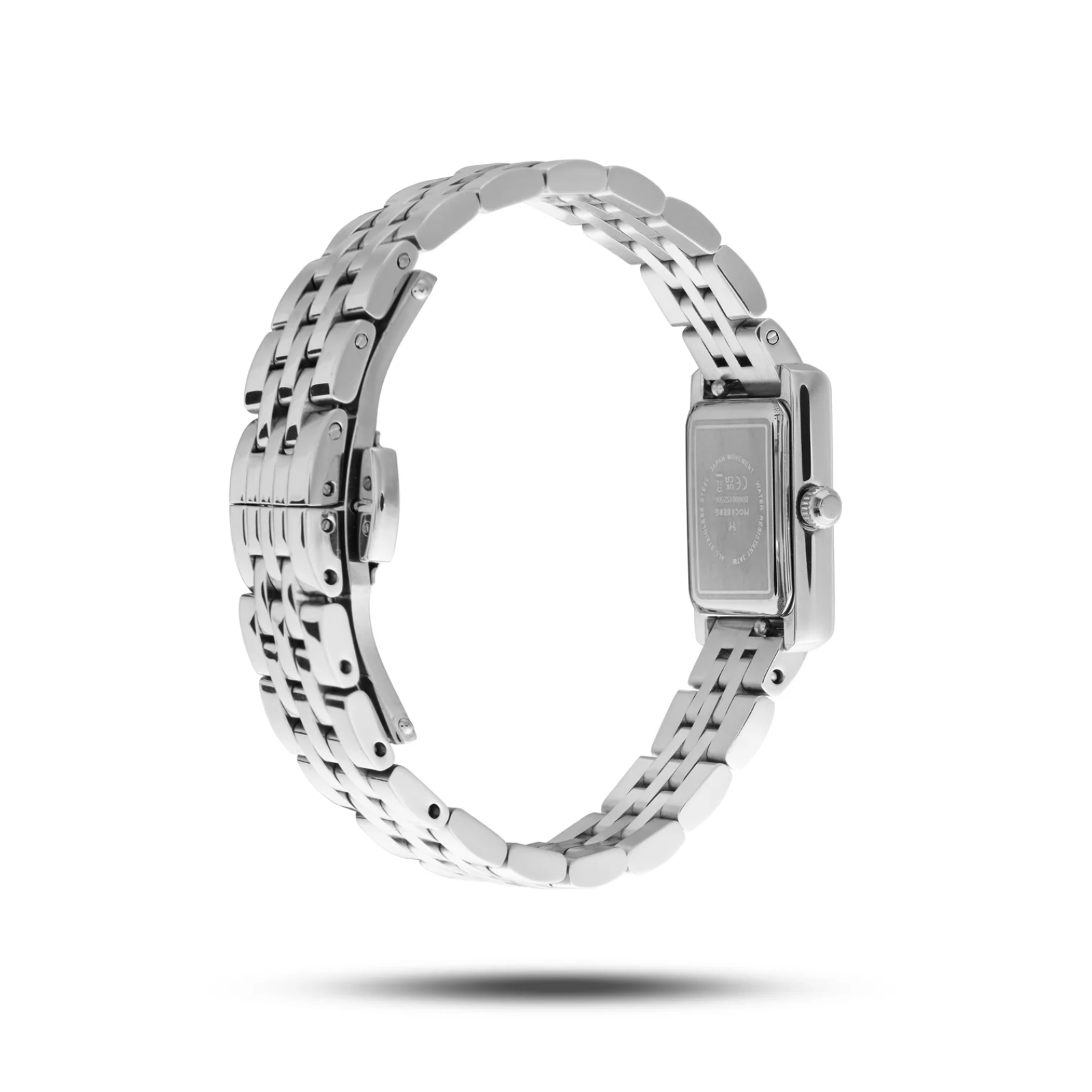 Modellen leveres med hvit urskive med romertall og sølvfargede visere. Både kasse og lenke er produsert i rustfritt stål, og urverket er et Japan Watch Movement VC00.