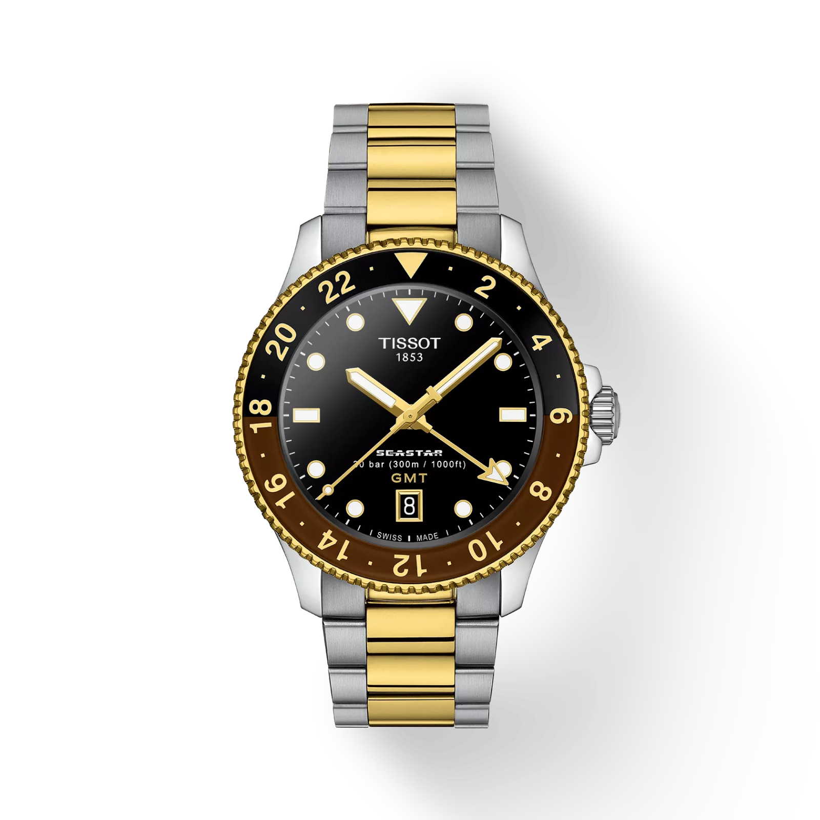 Med skrukrone og baklokk, samt Super-LumiNova® som sikrer lesbarhet i mørket, er Tissot Seastar 1000 Quartz GMT en ekte mester i vann, som virkelig har alt.
