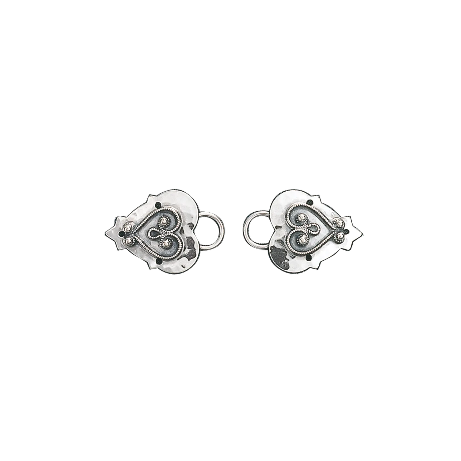 Maljer i oksidert sølv til Rogalandsbunaden. Maljene har en hamret overflate med flott, påloddet filigrandekor. Du trenger 4–5 par maljer til bunaden.