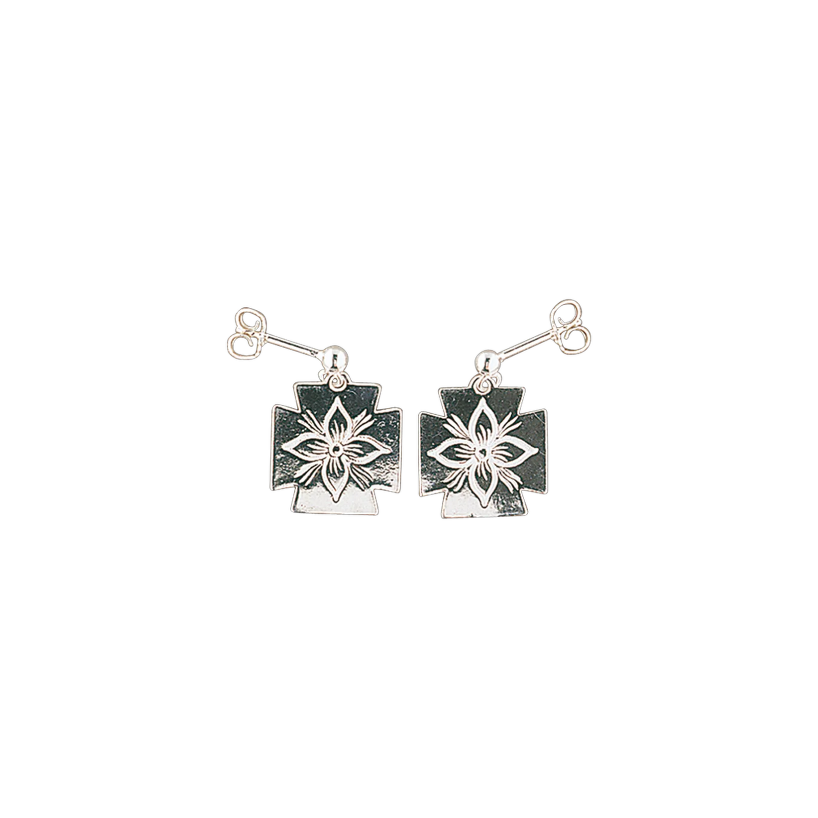 Nydelige og blanke øredobber i hvitt sølv. De har gravert dekor som harmonerer med det vakre florabroderiet på Rogalandsbunaden og er det perfekte tilbehøret.