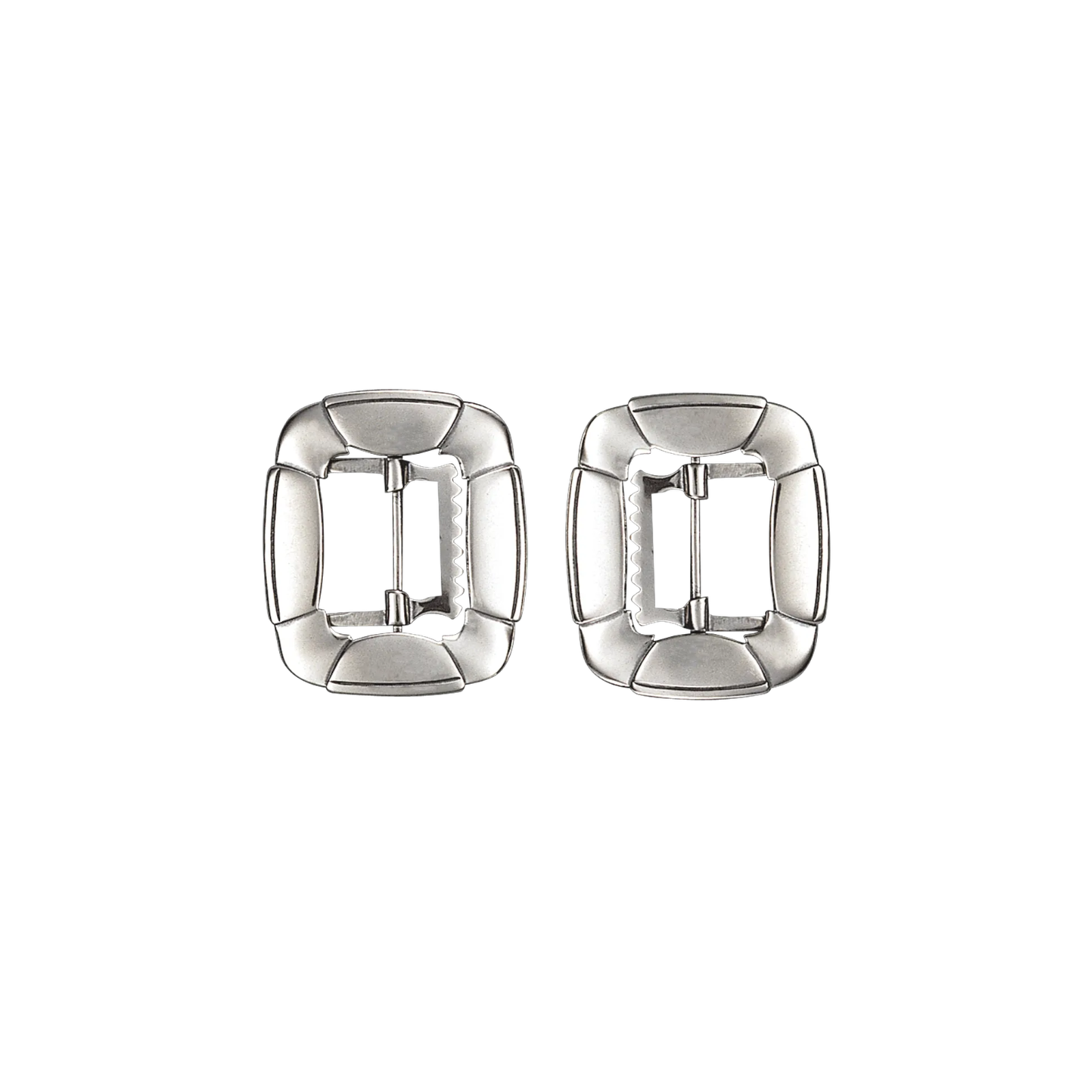 Firkanta spenner i oksidert sølv til herre. Blir brukt på vest og knebukser til herrebunader over hele landet.