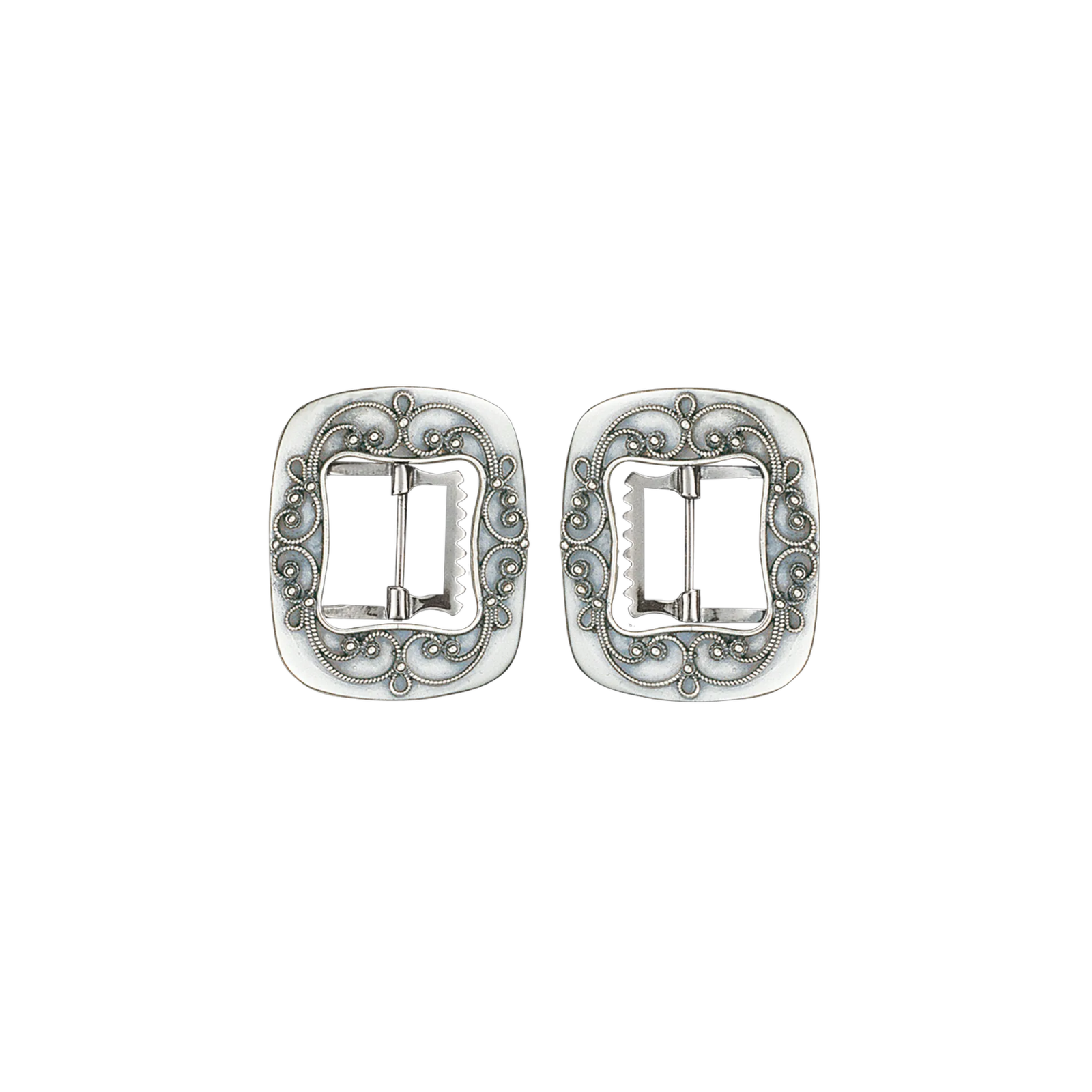 Spenne til Rogalandsbunaden i oksidert sølv, egnet for kne- eller vestbruk. Tradisjonell dekor gir et klassisk og elegant uttrykk.