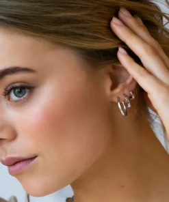 Øredobbene er laget av 925 sølv med rhodium, polert overflate.