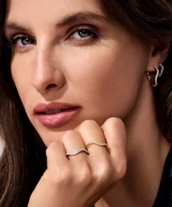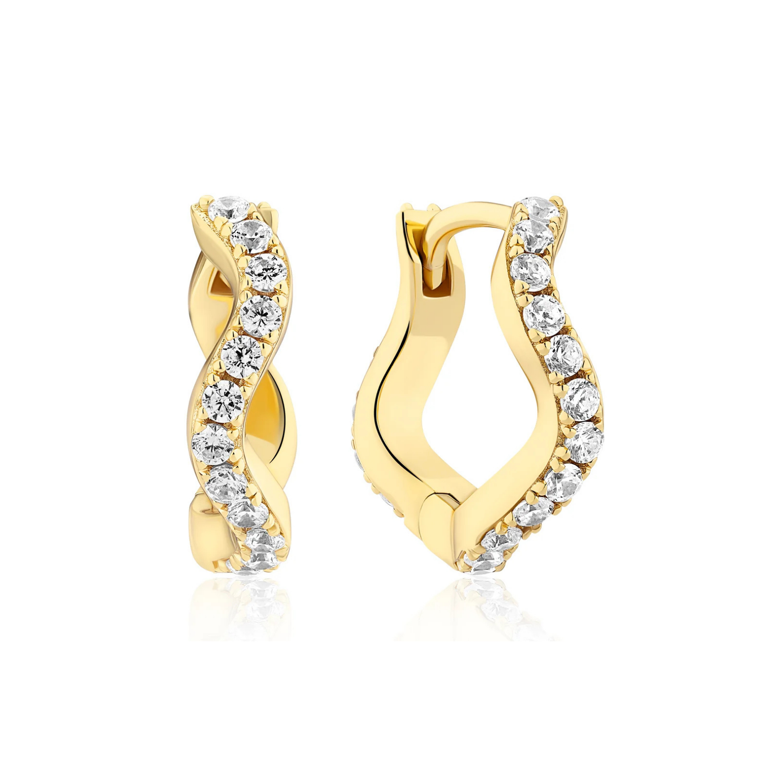 Øredobbene er laget av 18 karat forgylt 925 sølv, polert overflate med fasettslipte hvite zirkoner.