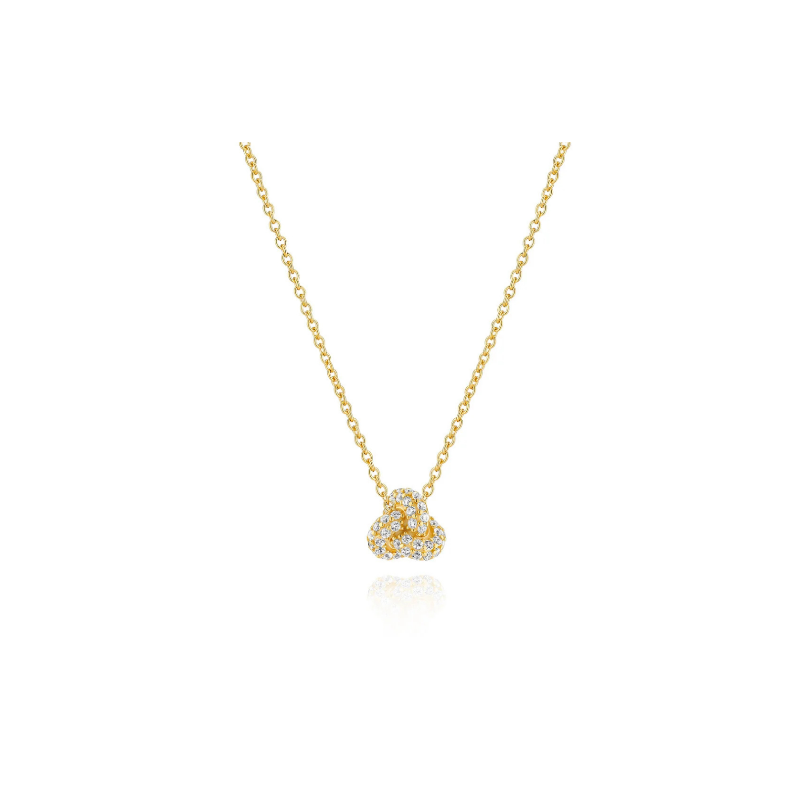 Halskjede er laget av 18 karat forgylt sølv, med fasettslipte hvite zirkoniaer