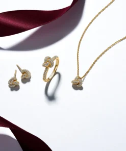 Øredobbene er laget av 18 karat forgylt sølv, med fasettslipte hvite zirkoner.