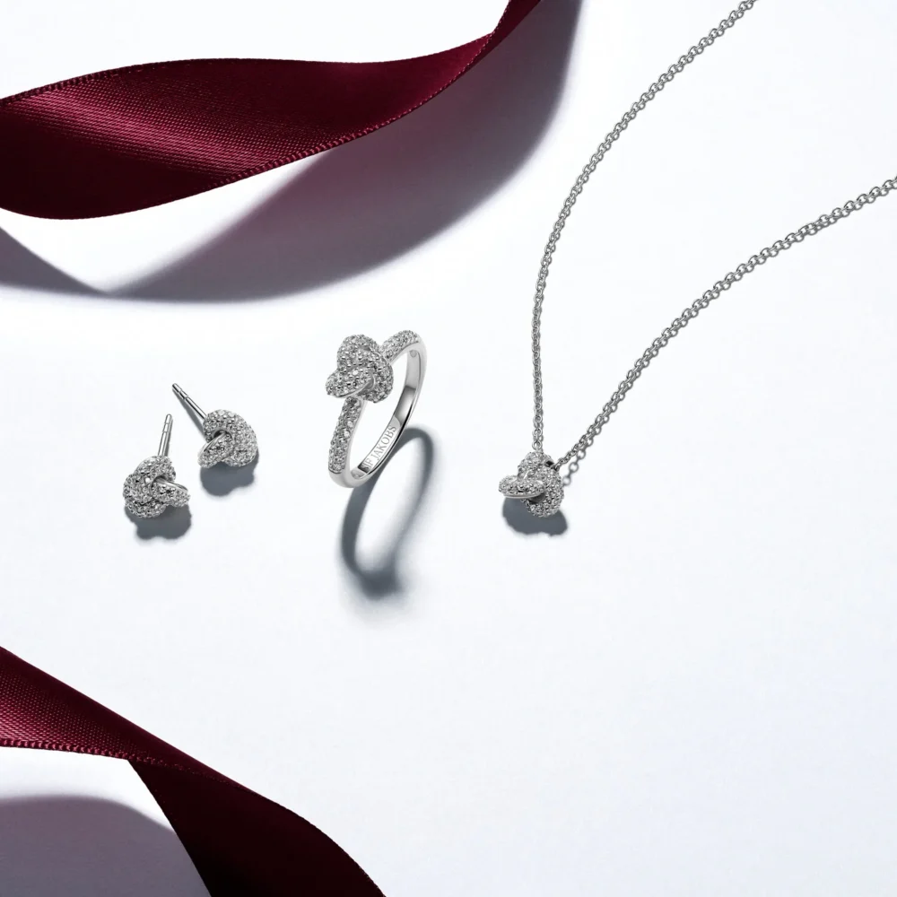 Øredobbene er laget av rhodiumbelagt 925 sølv og smykket med fasettslipte hvite zirkoniaer