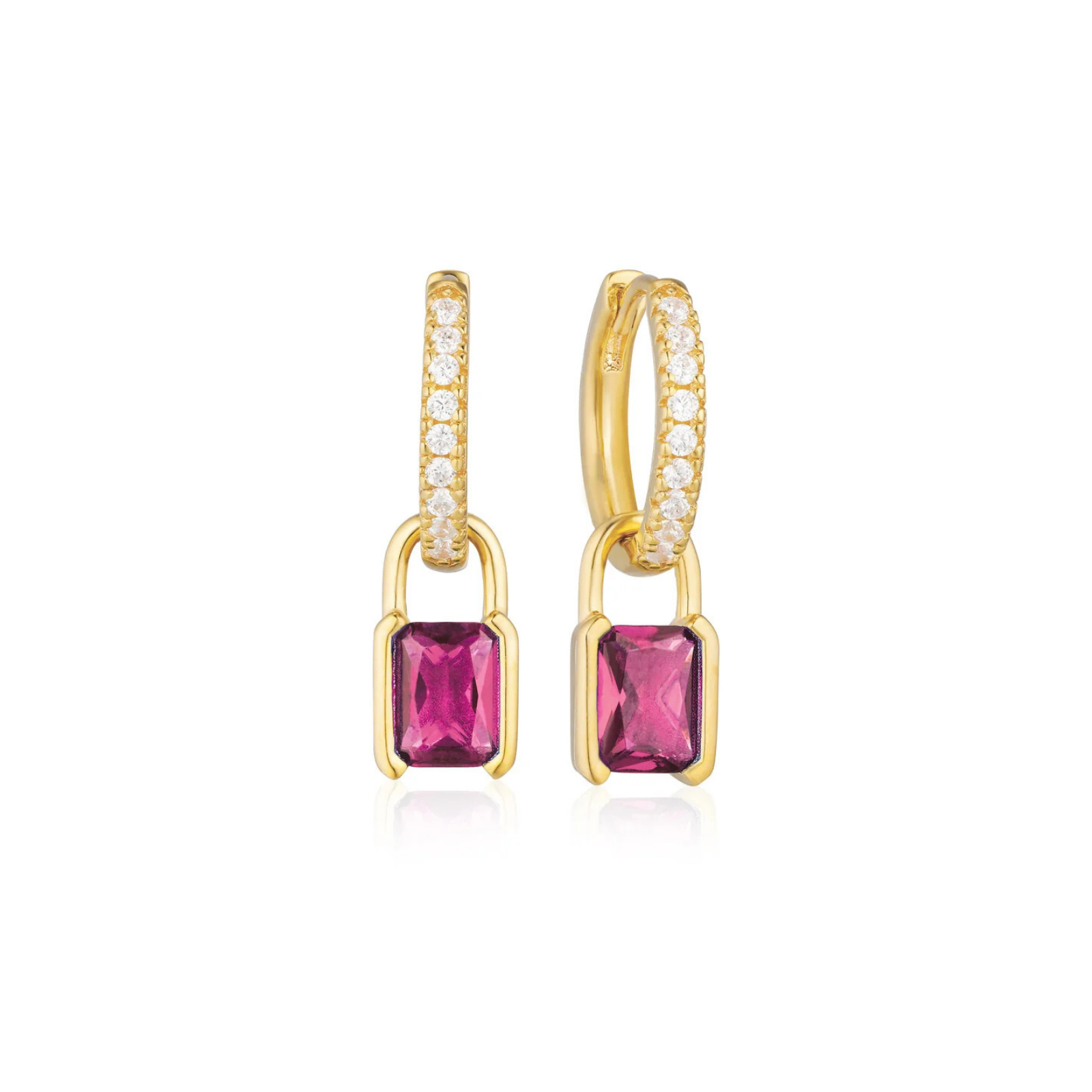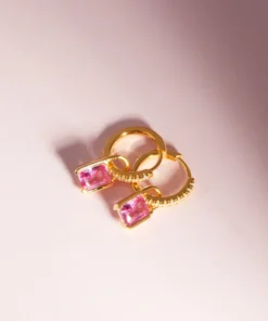 Øredobbene er laget av 18 karat forgylt sølv, har polert overflate med hvit og rosa zirkoner.
