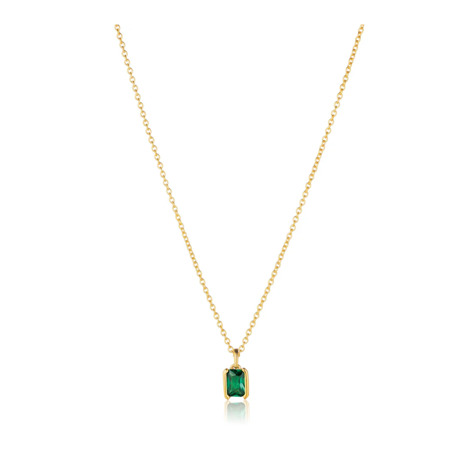 Dette halskjedet har et elegant og sofistikert uttrykk, der den smaragdslipte grønne zirkonia-steinen gir et eksklusivt og iøynefallende preg. Gullbelegget tilfører en varm og luksuriøs glød, mens den polerte overflaten fremhever de fine detaljene i designet.