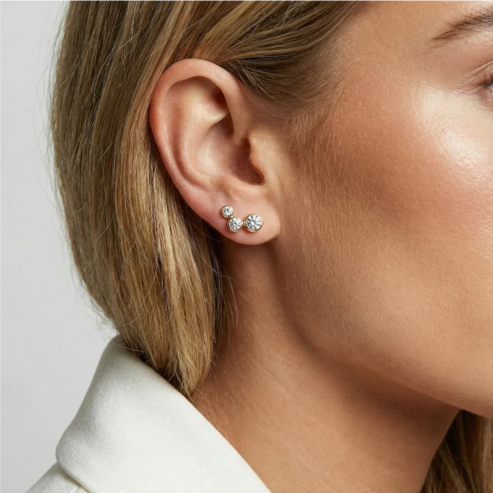 Øredobbene er har polert overflate og fasettslipte hvite zirkonia.