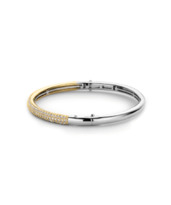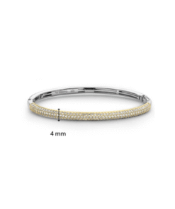 Ti Sento armring i forgylt sølv. Armringen er laget av rhodiumbelagt sølv og er satt med hvite zirkoner i den øvre kanten. Armringen er et must i smykkeskrinet. La det skinne alene eller kombiner med andre armbånd fra Ti Sento. Armringen er i strl M, og har en omkrets på 17cm.