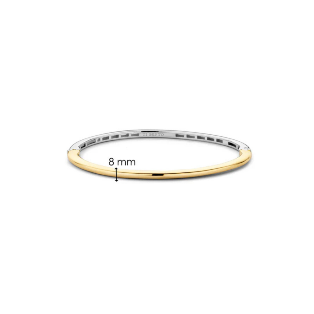 Ti Sento armring i forgylt sølv. Armringen har et tykt lag med platina som beskytter og holder det skinnende. Det er det perfekte tilbehøret for ethvert antrekk. Armringen er i strl M, og har en omkrets på 17cm.