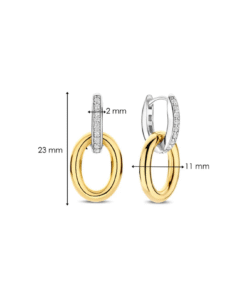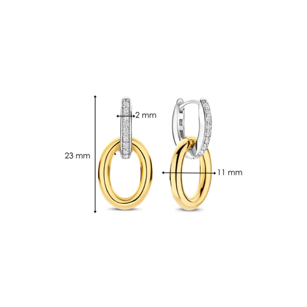 Disse Ti Sento dråpeøredobbene i forgylt sølv er en frisk vri på tidløs eleganse, og blander moderne stil med uanstrengt raffinement. Kontrasten av blandet metall gir et dynamisk preg, noe som gjør dem til et allsidig blikkfang. Nikkelfrie og hypoallergeniske, lover de komfort hele dagen med en luksuriøs finish.