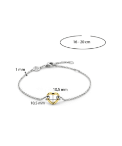 Dette gullbelagte hjertearmbåndet fra Ti Sento har en elegant hjerteform som midtpunkt. Hjerteformen er laget av 925 sølv av høyeste kvalitet og belagt med gult gull. Pynt håndleddene dine med kjærlighet – en påminnelse om å gi den kjærligheten til deg selv – alltid. Kombiner dette hjertearmbåndet med andre armbånd for et dristig uttrykk. Lengden på armbåndet er justerbar for å sikre at det passer perfekt. Alle armbåndene våre er nikkelfrie og hypoallergeniske.