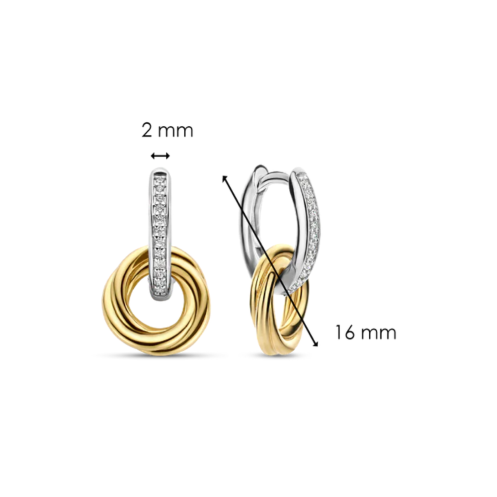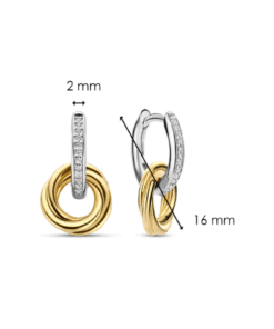 Disse TI SENTO øredobbene i forgylt sølv har to elegante gullbelagte sirkler med vridde linjer som henger fra små ringer med en pavé av zirkoner. Disse tidløse vintage-smykkene vil gi antrekket ditt et snev av edgy eleganse.