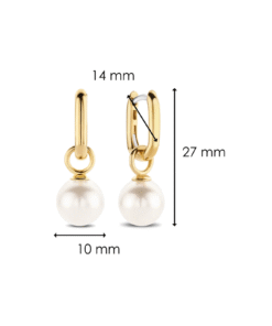 Disse TI SENTO gullbelagte sølvøredobbene har to skinnende hvite perler som henger i øreringene. Disse smykkene ble inspirert av sommeren på den solfylte øya Capri. De lekre hvite perlene utrykker eleganse og sikrer et sofistikert utseende. Kombiner med andre øreringer eller la dem skinne alene.