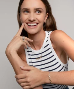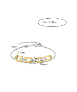 Dette armbåndet i forgylt sølv fra Ti Sento har en fengslende blanding av klassisk eleganse og moderne stil. Laget av førsteklasses 925 sølv, har armbåndet gullbelagte signaturlenker som sømløst holdes sammen av utsmykkede lenker, noe som skaper en strålende glød av raffinement og glamour. Den blendende rekken av zirkonia gir et ekstra lag med luksus, og kaster en strålende gnist med hver bevegelse.