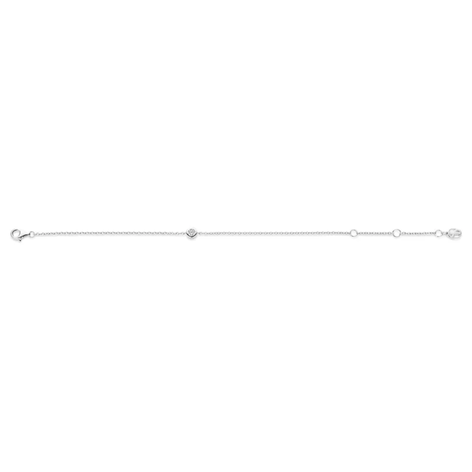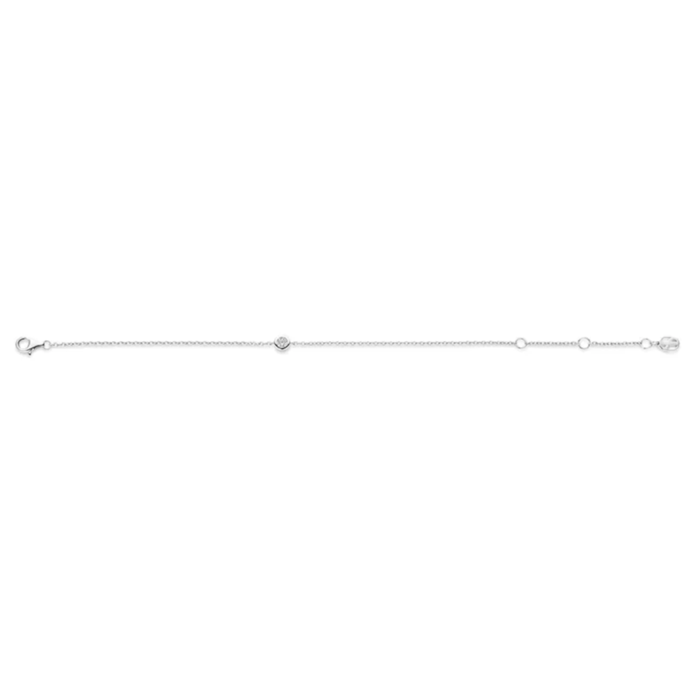 Armbåndet har en fin lenke med en sentrert zirkonia-stein som gir et subtilt og raffinert glimt. Det er ofte belagt med platina for ekstra glans og beskyttelse, og har en justerbar lås som gjør at det sitter komfortabelt på håndleddet.