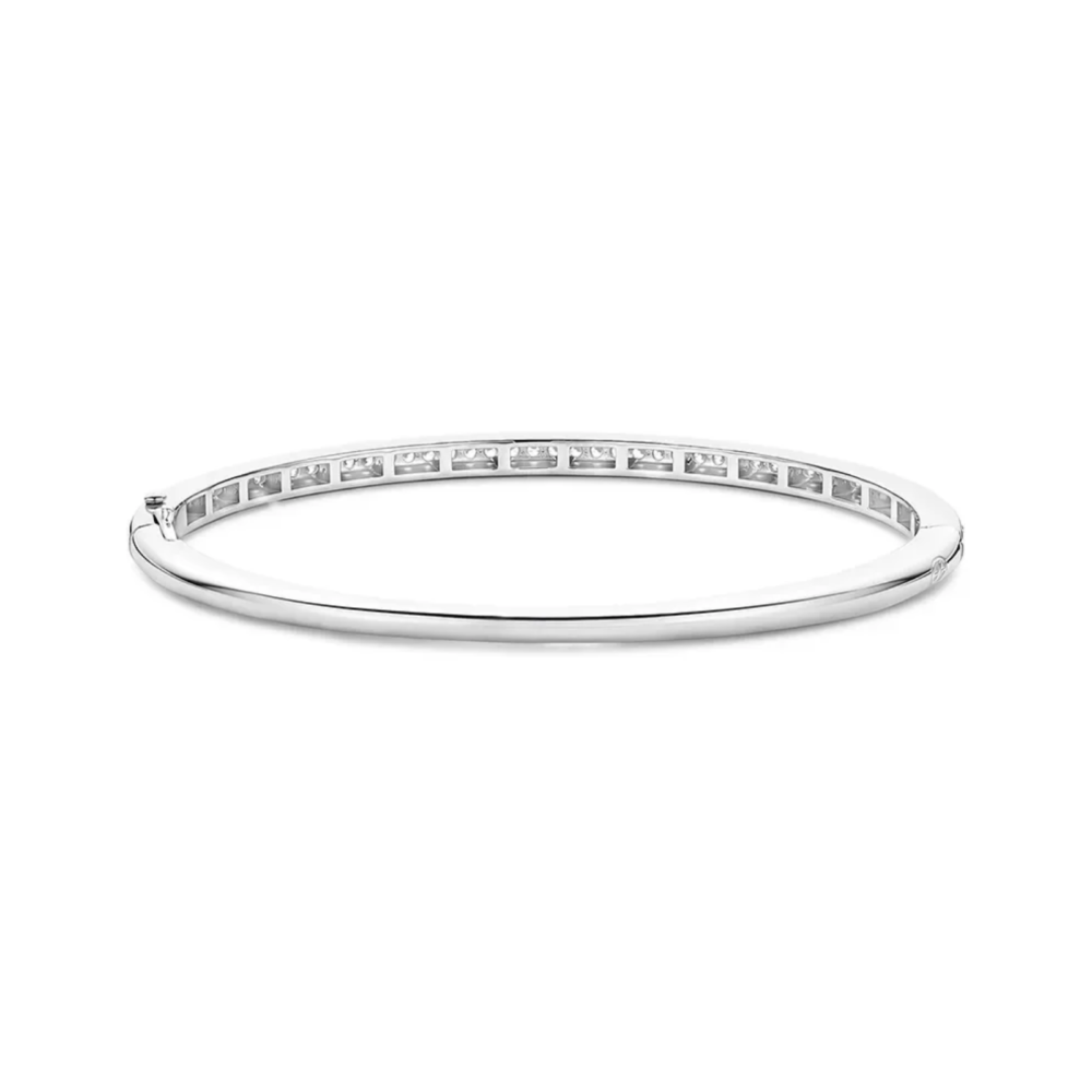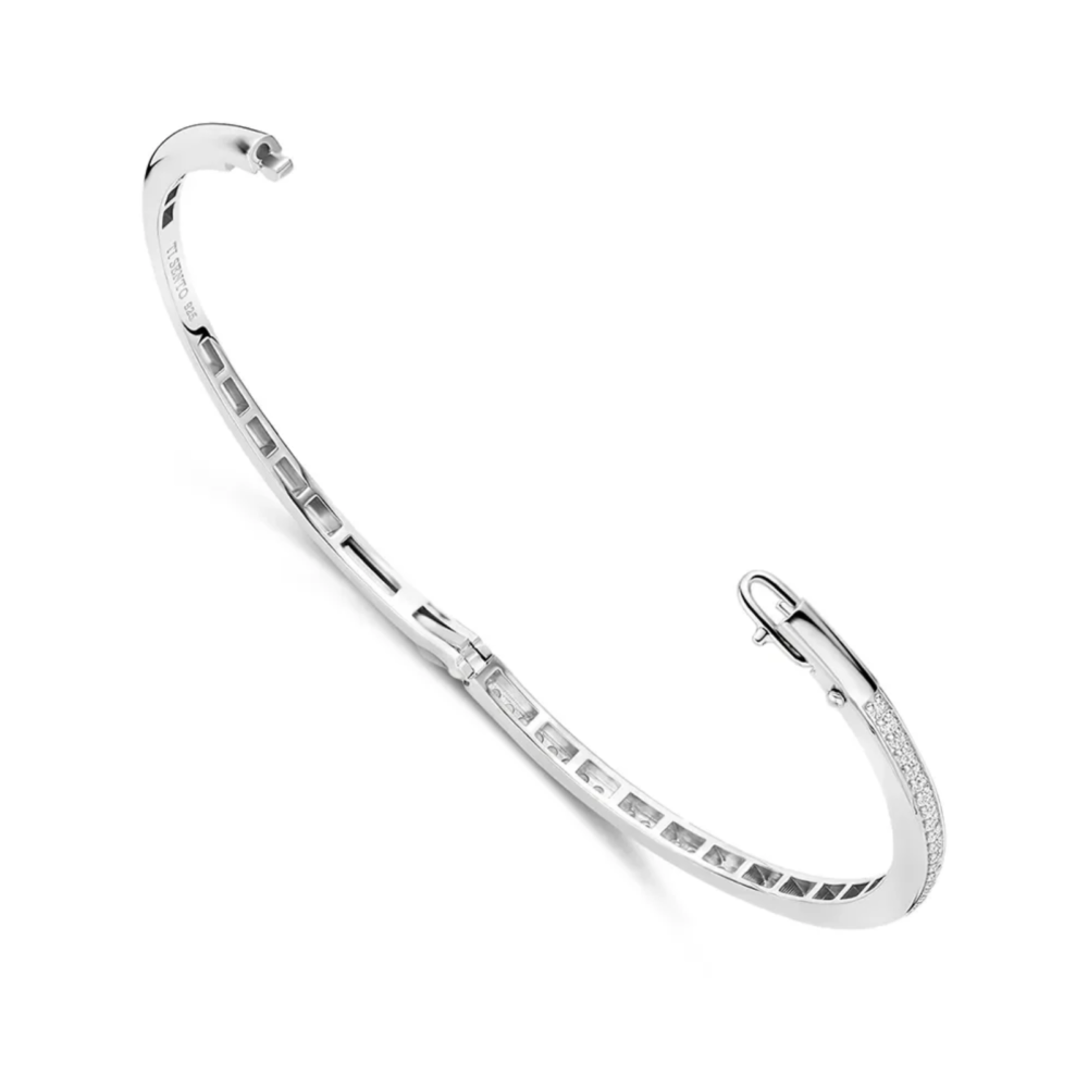 Designet har en slank bøyleform og er dekorert med en rekke håndsatte zirkonia-steiner som gir et raffinert og glitrende skinn. Den minimalistiske utformingen gjør at armbåndet enkelt kan brukes både alene for et rent uttrykk eller sammen med andre smykker for en mer lagdelt stil.