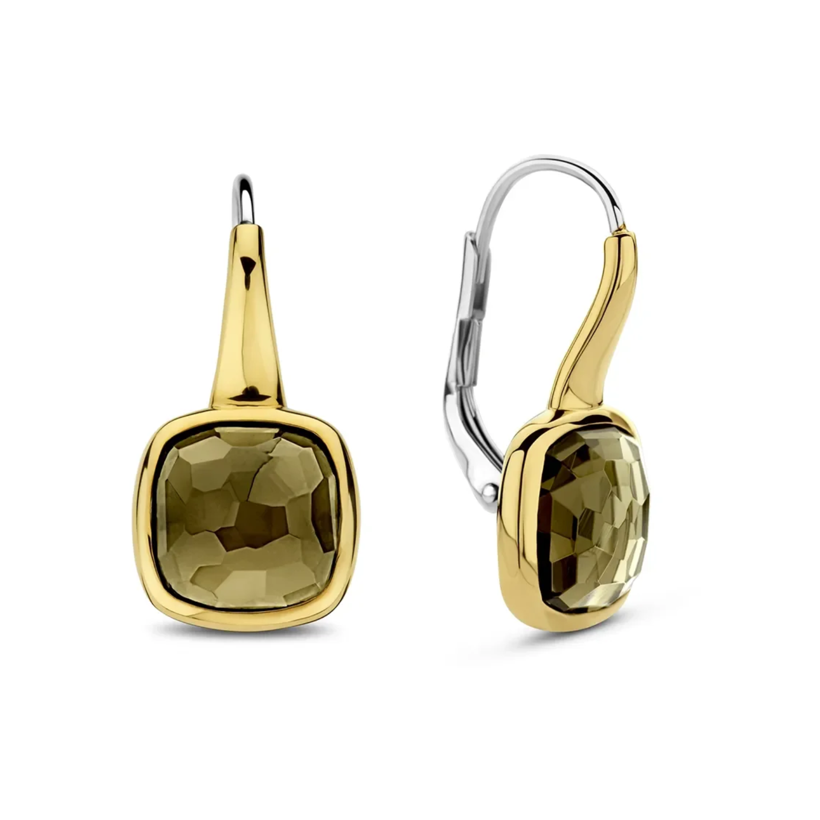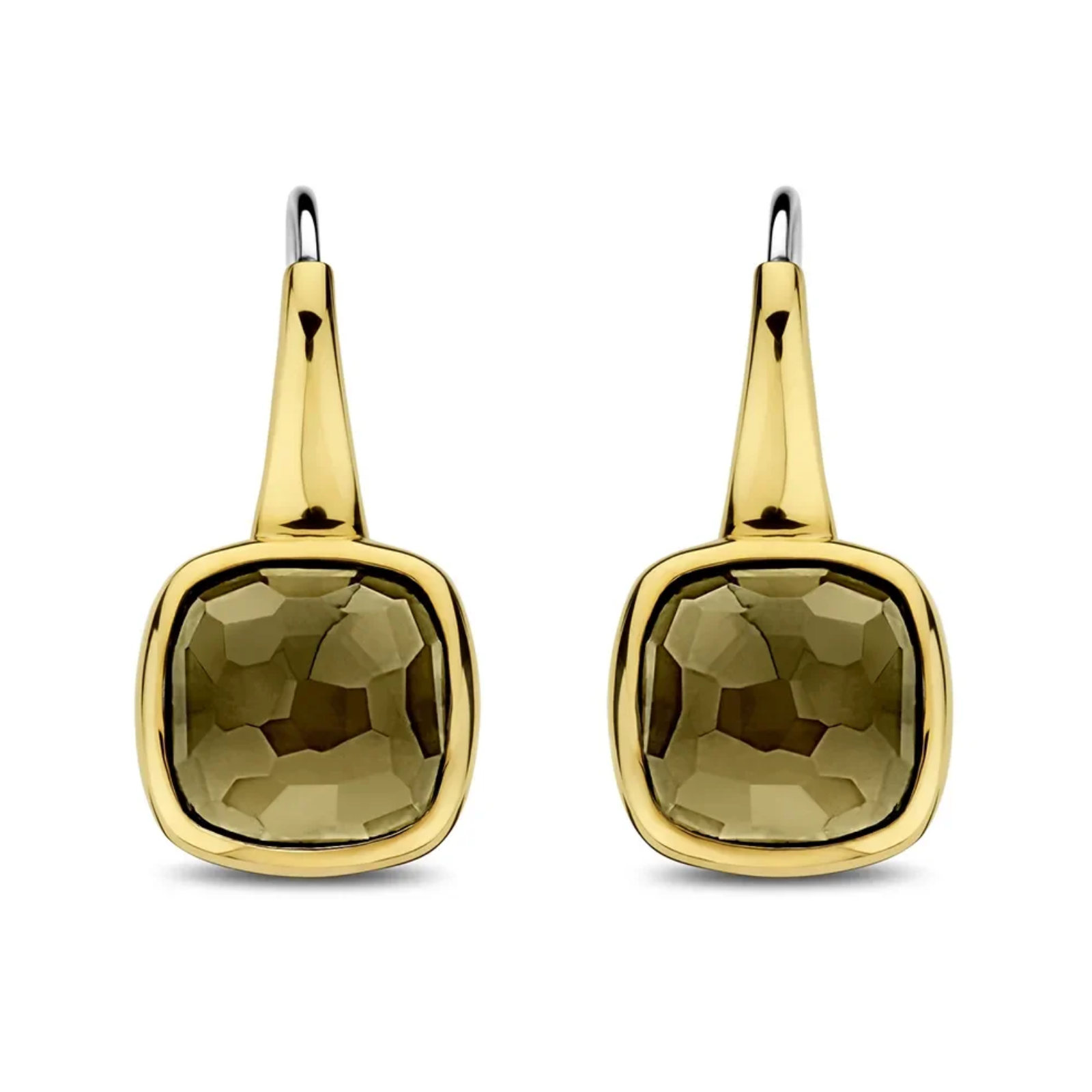 TI SENTO – MILANO Earrings 7989KA er elegante øredobber i 925 sterling sølv med gullbelagt finish og dekorative khaki-fargede steiner.